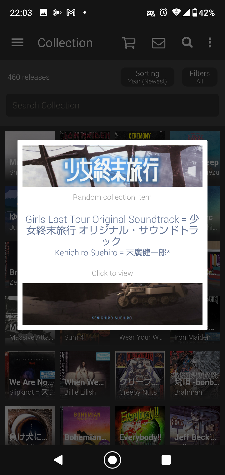 個人的に一番嬉しい機能はスマホを振るとランダムで1枚アルバムを出してくれることですね。通勤時に聴くアルバムとかをサッと決められるのは便利。